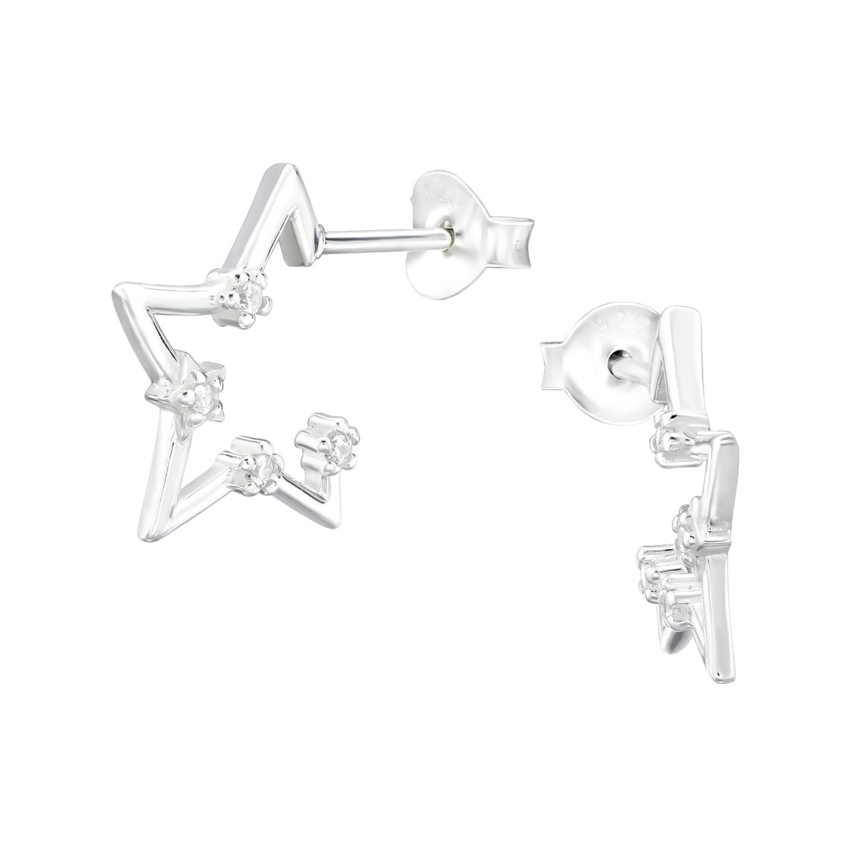 TAG-ek: Csillag, félkarika, cirkónia, köves, 95, ezüst, stift, fülbevaló