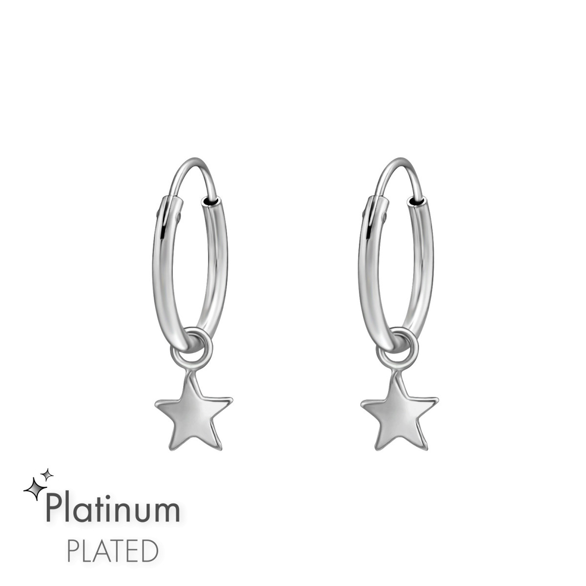 Csillag medálos platina bevonatos ezüst karika fülbevaló