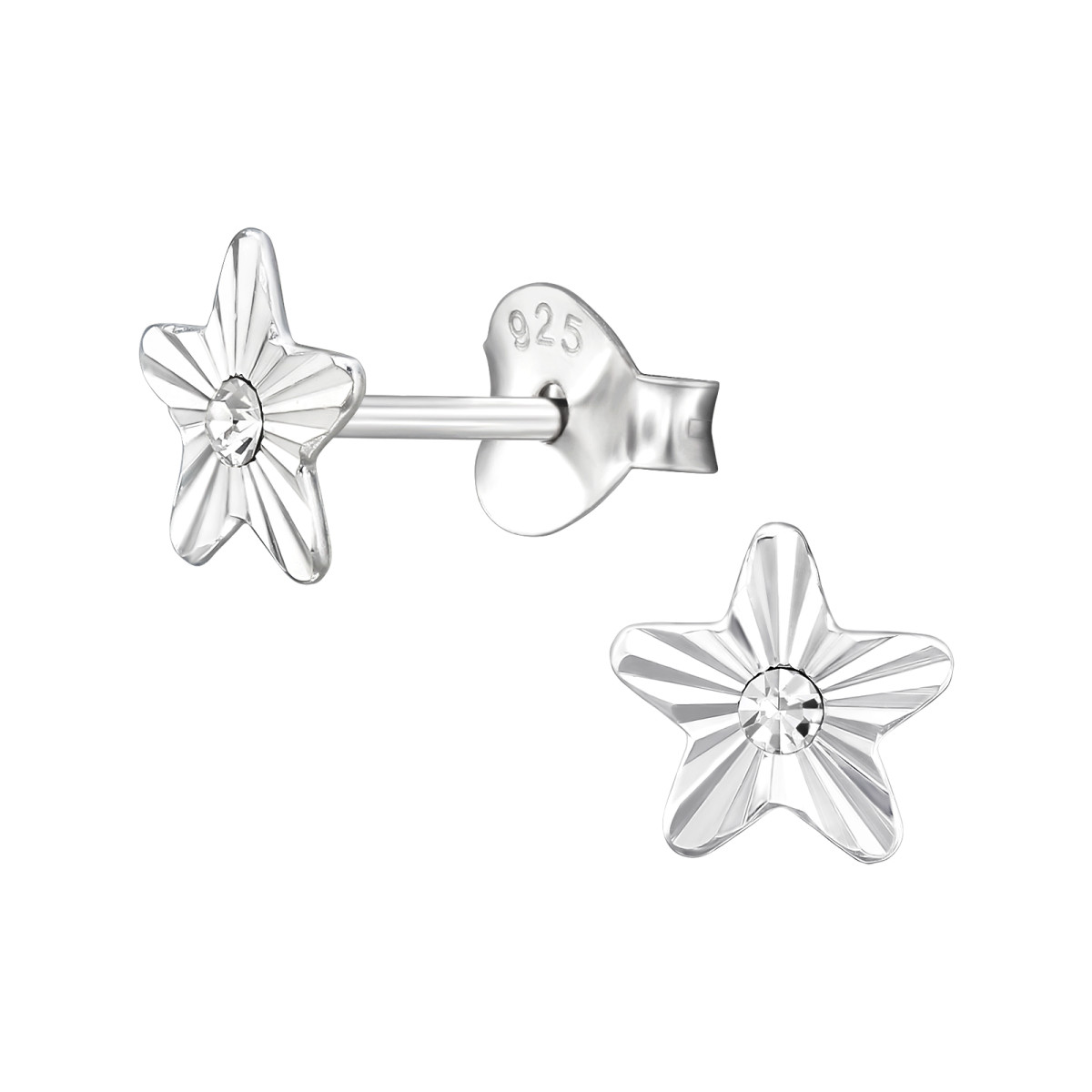 TAG-ek: Csillag, rovátkás, kristály, stift, ezüst, fülbevaló,