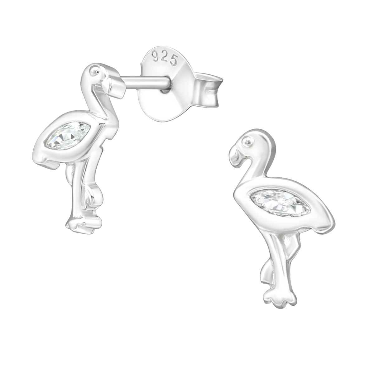 TAG-ek: Flamingó, cirkónia, köves, ezüst, stift, fülbevaló