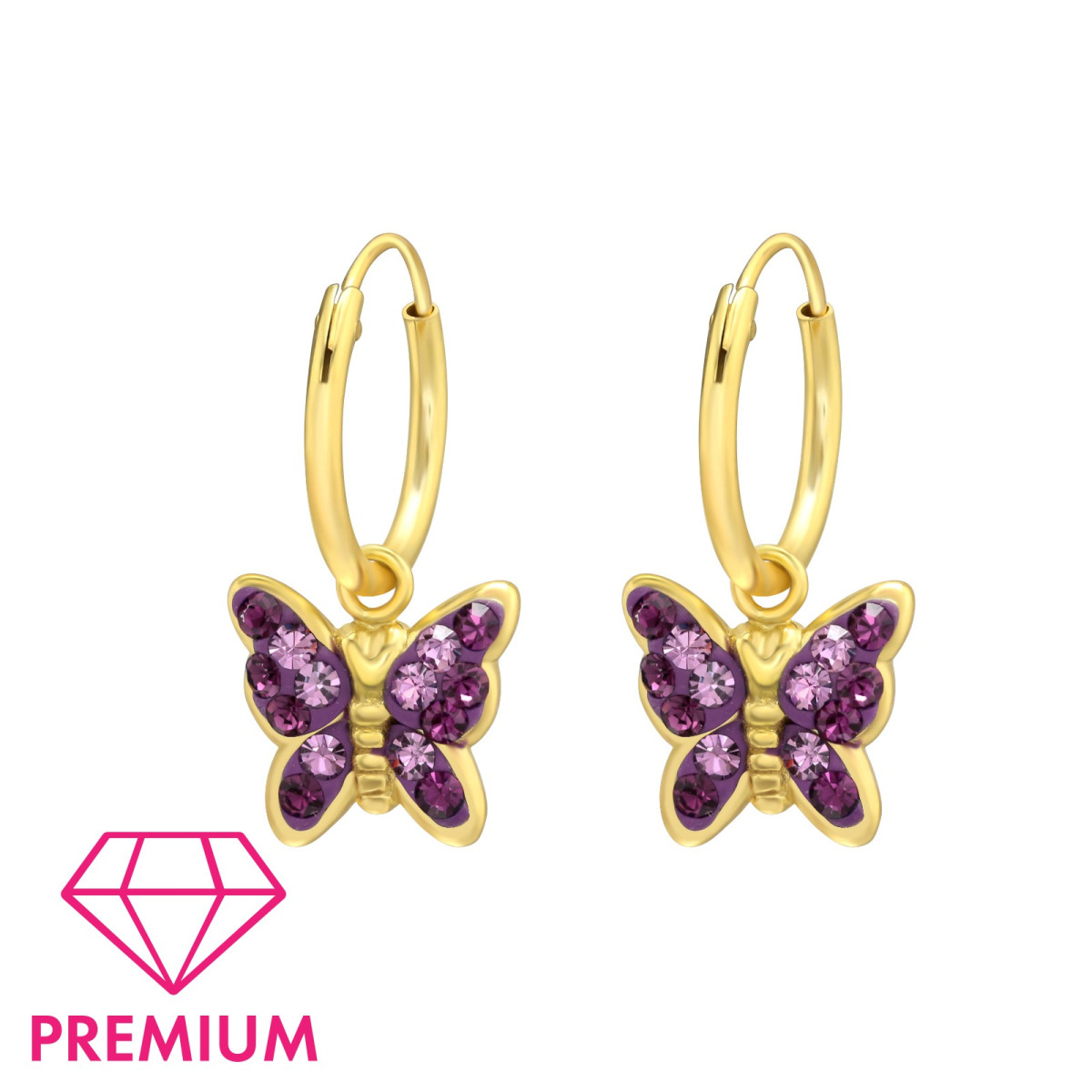 Lila kristály pillangó 14k aranyozott 925 ezüst karika gyerek fülbevaló