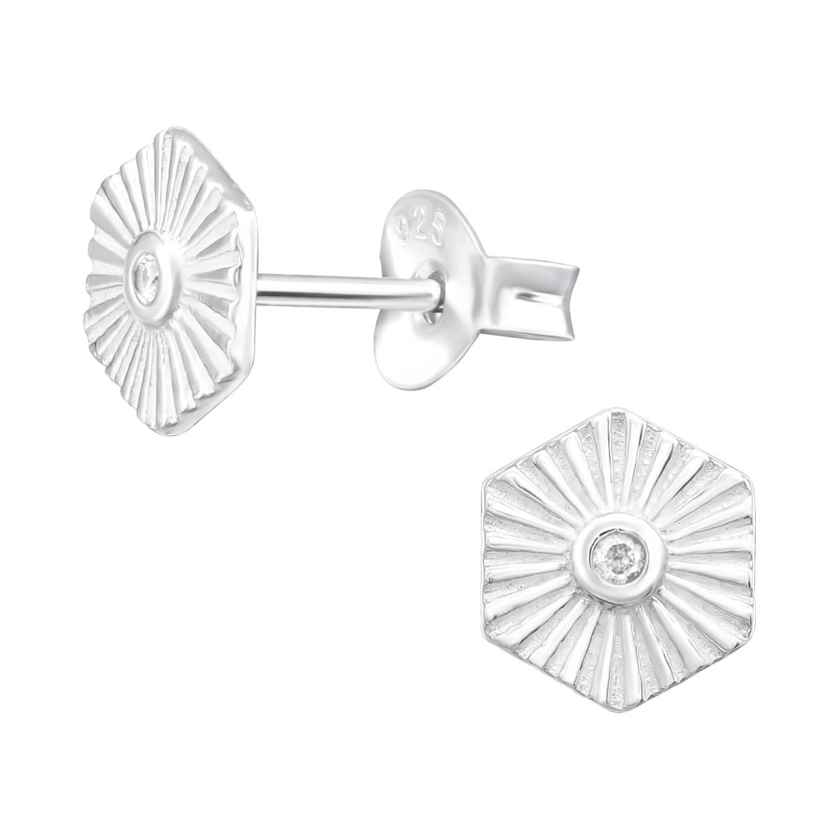 Hatszög vágott cirkónia köves ezüst stift fülbevaló