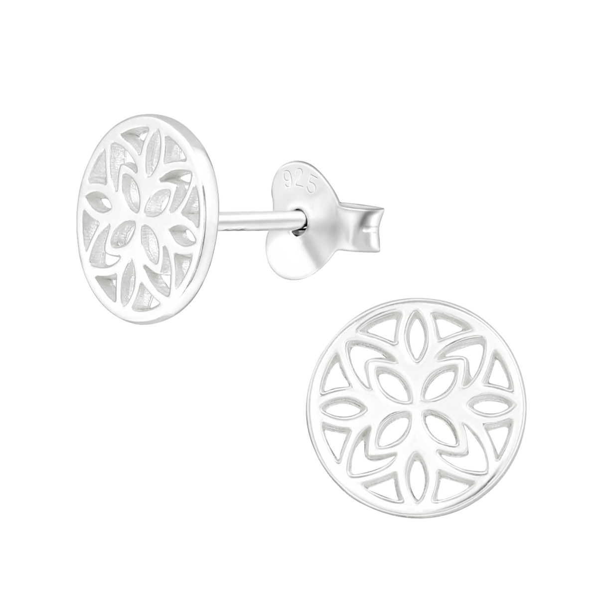 TAG-ek: Kerek, virág, mintás, ezüst, stift, fülbevaló