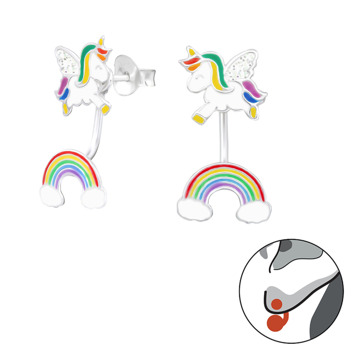 Kétrészes unikornis 925 ezüst stift gyerek fülbevaló levehető szivrvány kiegészítővel,