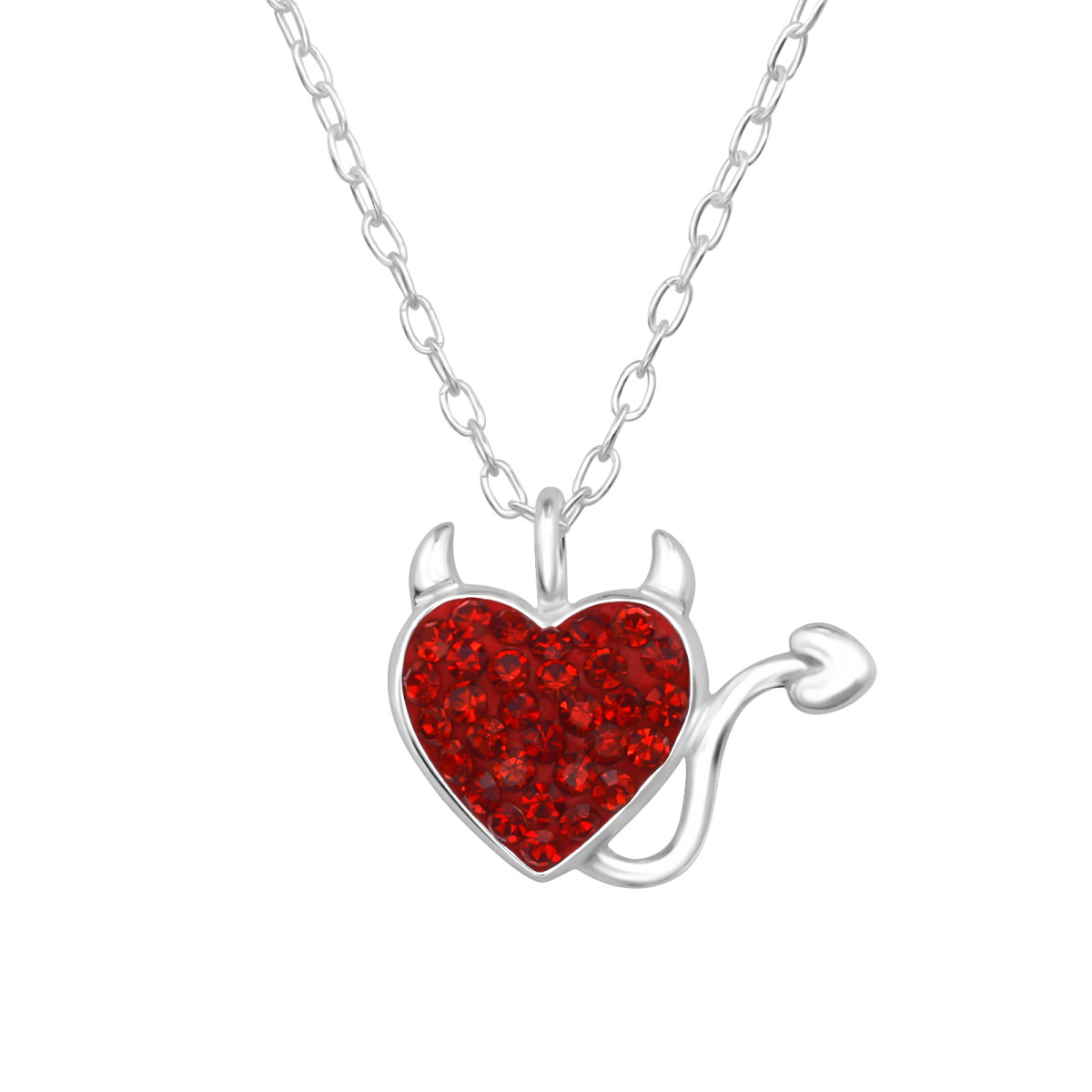 Kristály szív ördög ezüst nyaklánc - 45 cm