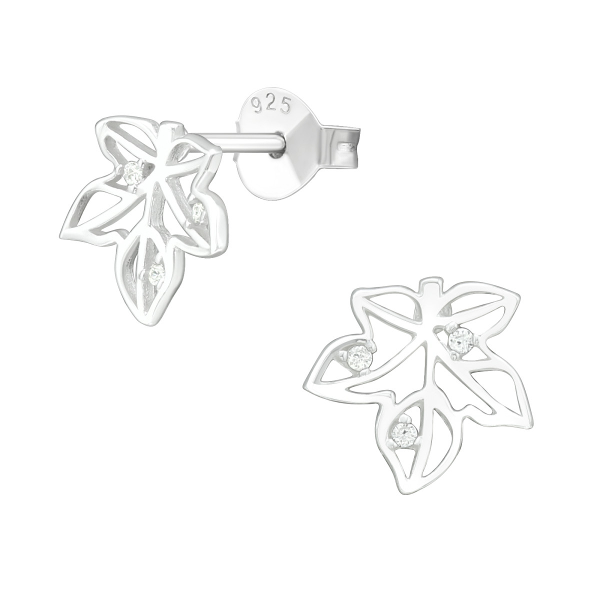 TAG-ek: Levél, cirkónia, köves, ezüst, stift, fülbevaló
