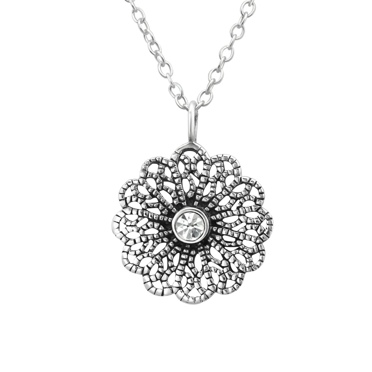 TAG-ek: Virág, oxidált, kristály, köves, ezüst, nyaklánc