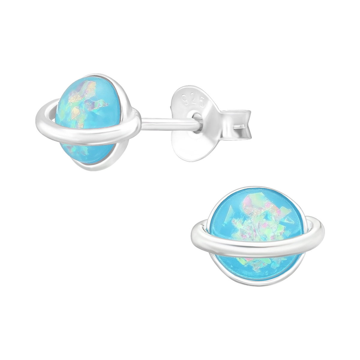 Szaturnusz opálos színű 925 ezüst stift fülbevaló