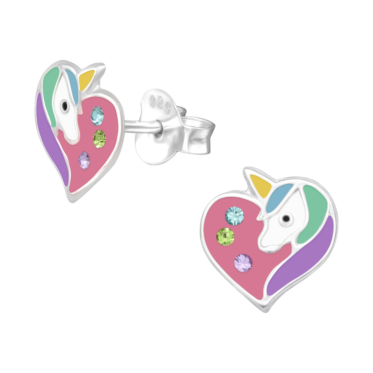 Szív és unikornis színes bedugós 925 ezüst stift gyerek fülbevaló