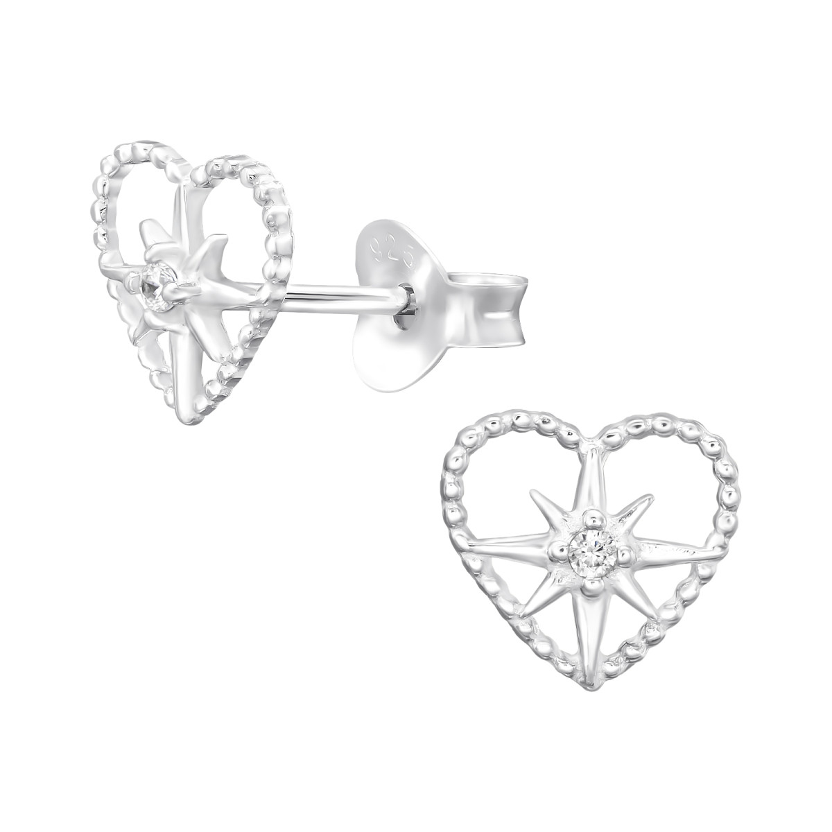 Szív sarkcsillag cirkónia köves ezüst stift fülbevaló