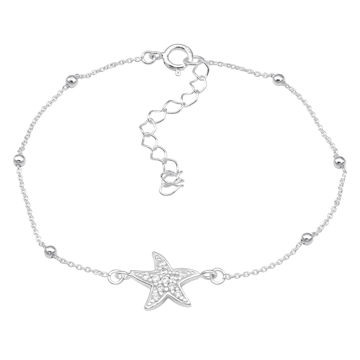 Tengericsillag cirkónia köves ezüst karkötő, golyós