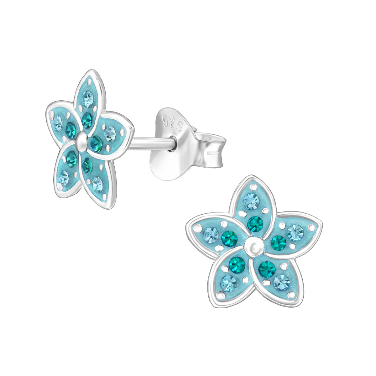 Türkizkék virágos kristály stift ezüstfülbevaló , kétold