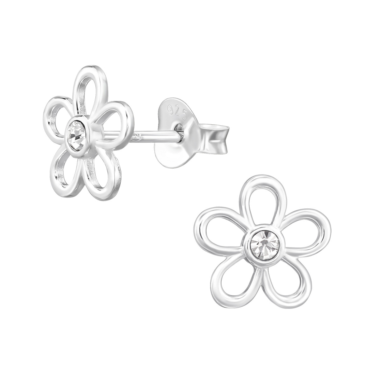 Virág fehér kristály stift ezüstfülbevaló , kétol